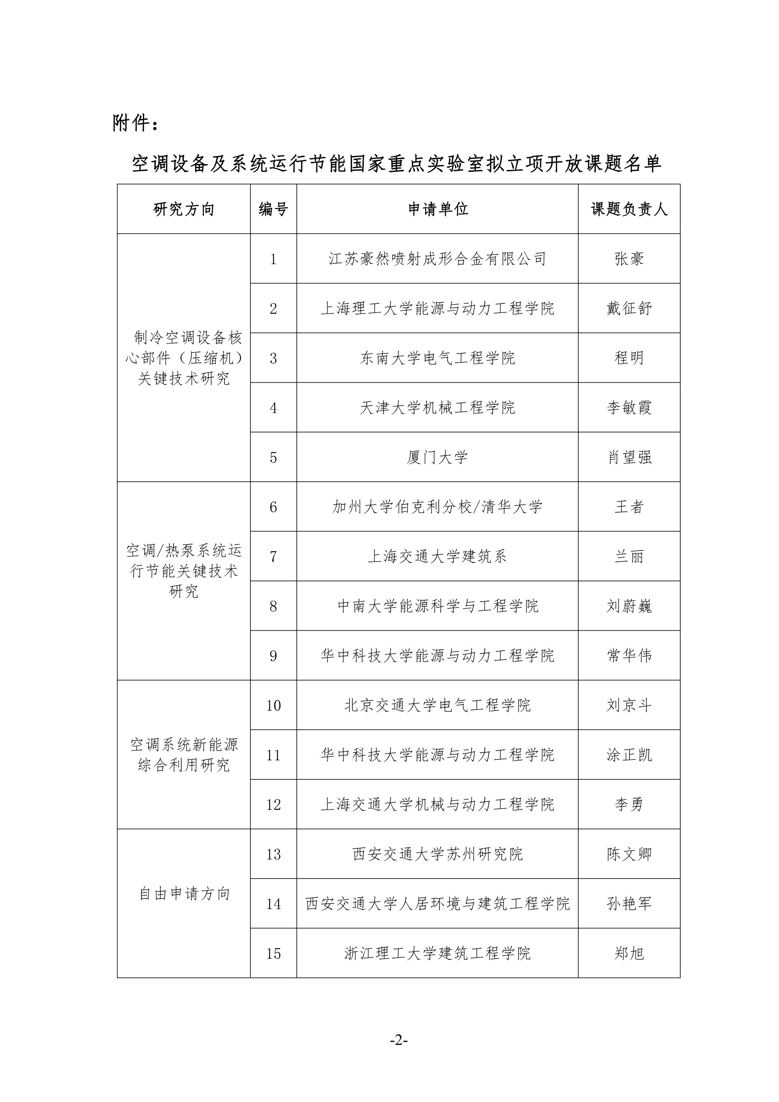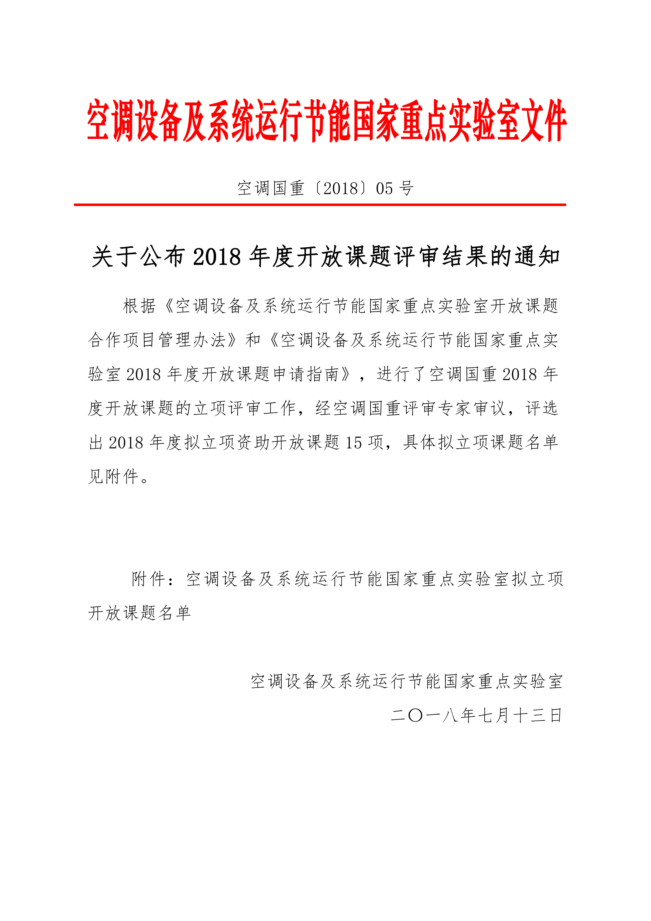 根據(jù)《空調(diào)設(shè)備及系統(tǒng)運(yùn)行節(jié)能國家重點(diǎn)實(shí)驗(yàn)室開放課題合作項(xiàng)目管理辦法》和《空調(diào)設(shè)備及系統(tǒng)運(yùn)行節(jié)能國家重點(diǎn)實(shí)驗(yàn)室2018年度開放課題申請指南》,進(jìn)行了空調(diào)國重2018年度開放課題的立項(xiàng)評審工作,經(jīng)空調(diào)國重評審專家審議,評選出2018年度擬立項(xiàng)資助開放課題15項(xiàng),具體擬立項(xiàng)課題名單見附件。